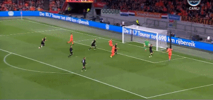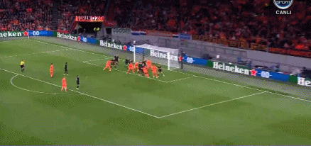 第75分钟,荷兰右侧角球机会,布罗贝伊头球顶偏