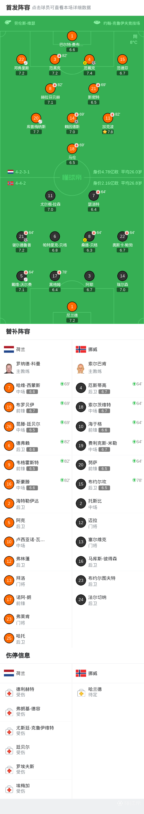 荷兰2-1逆转挪威,范戴克建功,赖因德斯制胜 2026-03-28